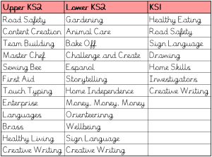 RUfL courses are taught in phases: KS1, Lower KS2 and Upper KS2. The children across the phase work with different adults and a variety of children from across the four phase classes. This enables them to build relationships outside of their own classroom and to develop confidence. The children get to choose the course they complete each half term from a selection of courses carefully selected to give them key life skills. The children’s efforts and accomplishments are recognised with a badge that is displayed on their team-coloured sashes.