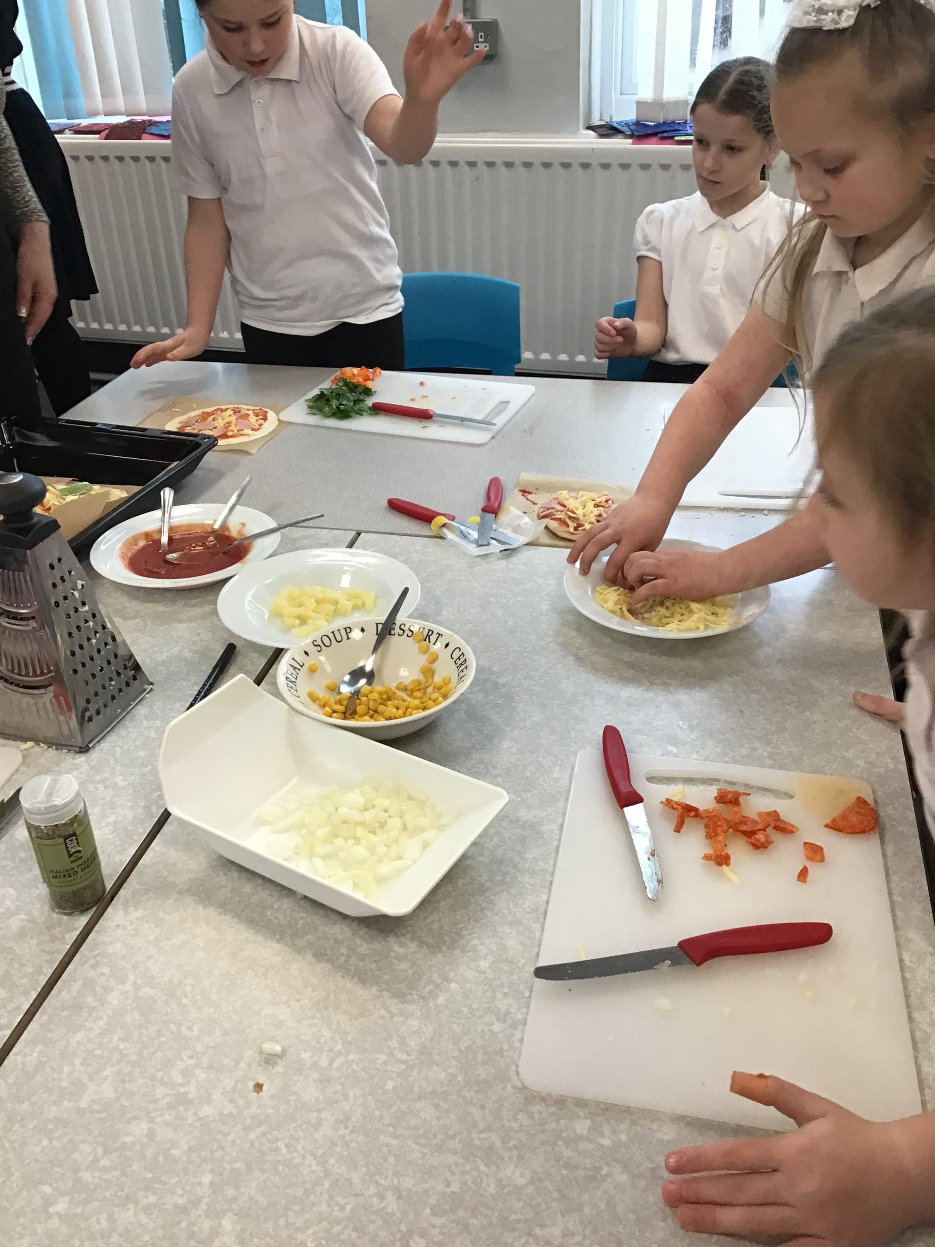 We are personal trainers, helping our clients to understand how to eat a balanced diet in order to keep fit.We explore the human skeleton and learn how muscles work. We end the topic by designing and making a healthy pizza in DT. In Art we design and make prints inspired by fruit and vegetables.