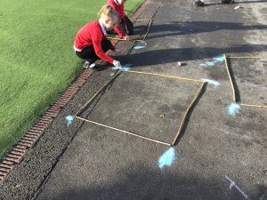 We began by making triangles and quadrilaterals in Maths, along with finding right angles. In English, we experienced Autumn on our field and gathered vocabulary for the poems we will be writing. In the afternoon, we drew the school from the top of the field so we could make a Lego map of the school.